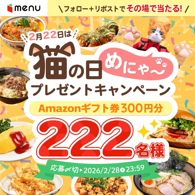 menu公式Xアカウントをフォロー&キャンペーン対象ポストをリポストして、キャンペーンページからご応募ください。