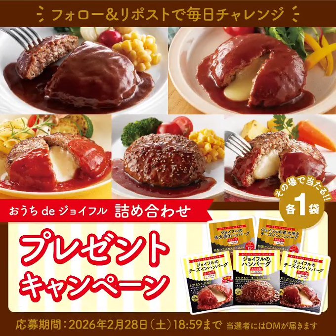 賞品:おうちdeジョイフル ハンバーグ詰め合わせ(20名様)