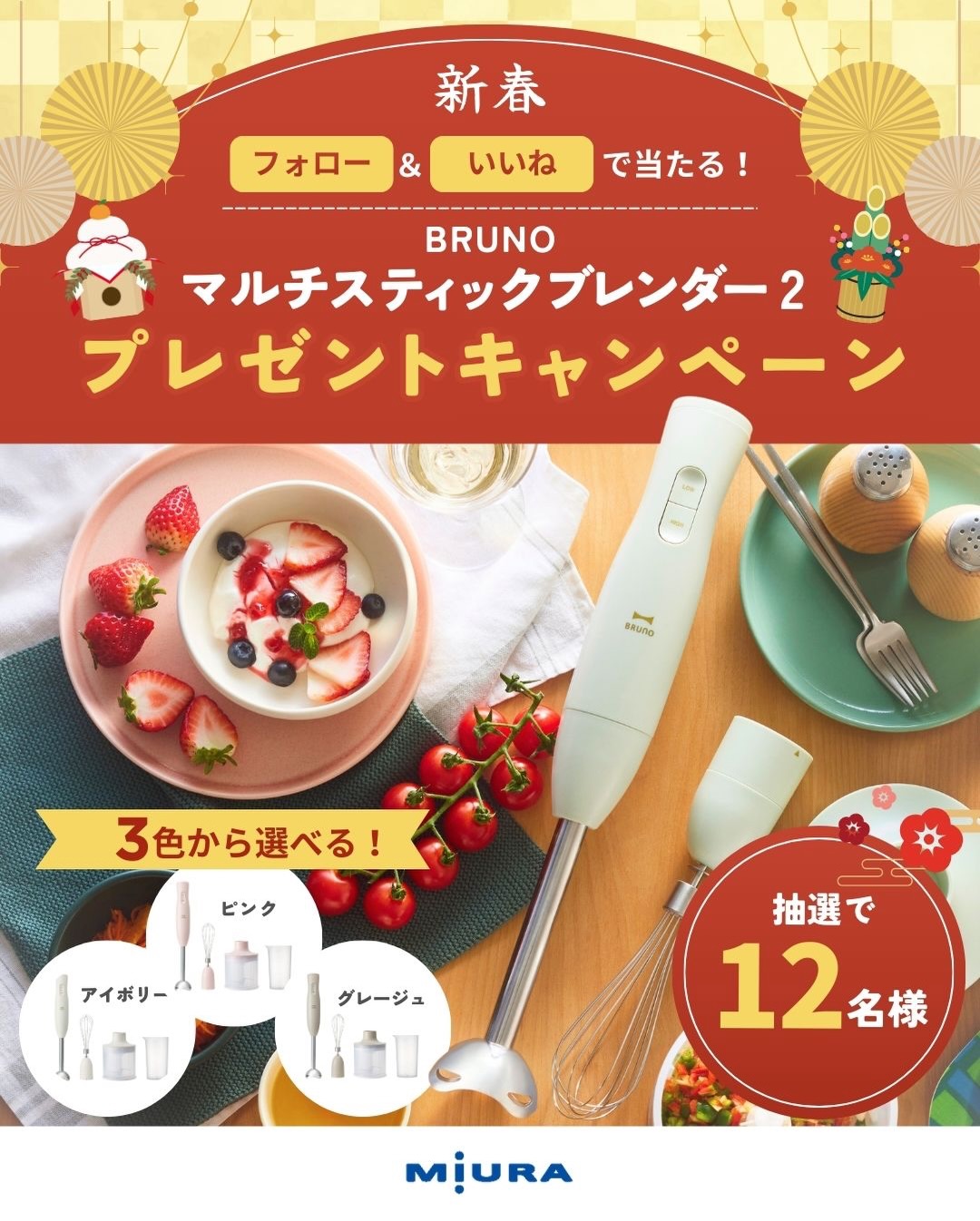 賞品:BRUNO マルチスティックブレンダー2(12名様)