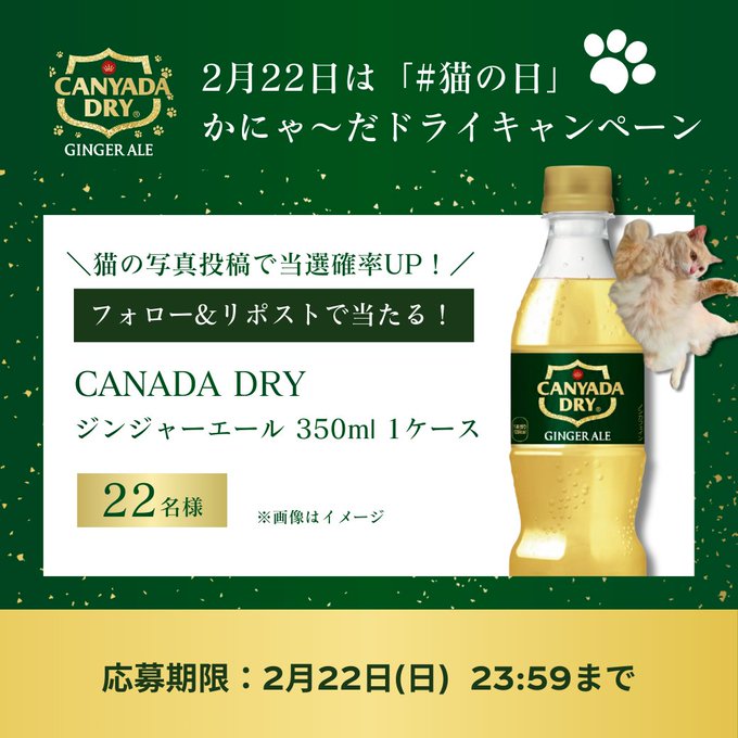 賞品:かにゃ~だドライ ジンジャーエール350ml 1ケース(22名様)