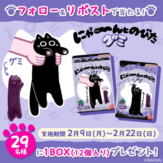 賞品:にゃーんとのびたグミ 1BOX(29名様)