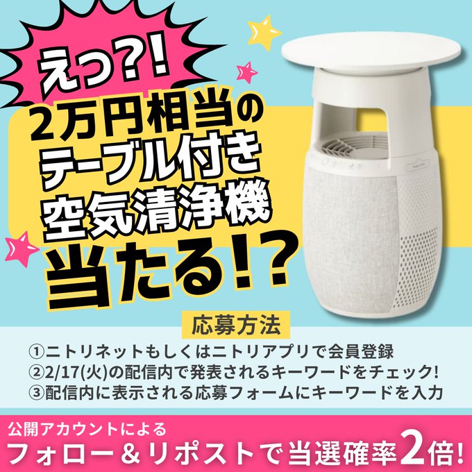 賞品:テ-ブル付き空気清浄機(NR-308)(1名様)