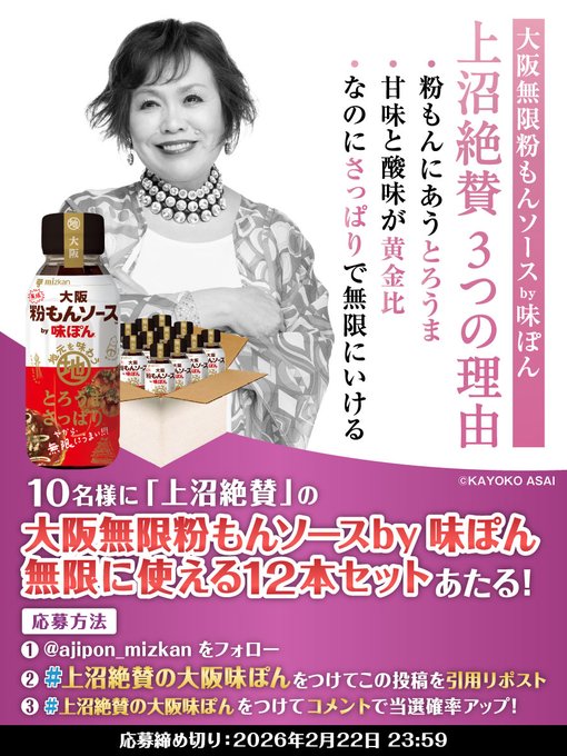 賞品:大阪無限粉もんソースby味ぽん 1ケース(12本)(10名様)