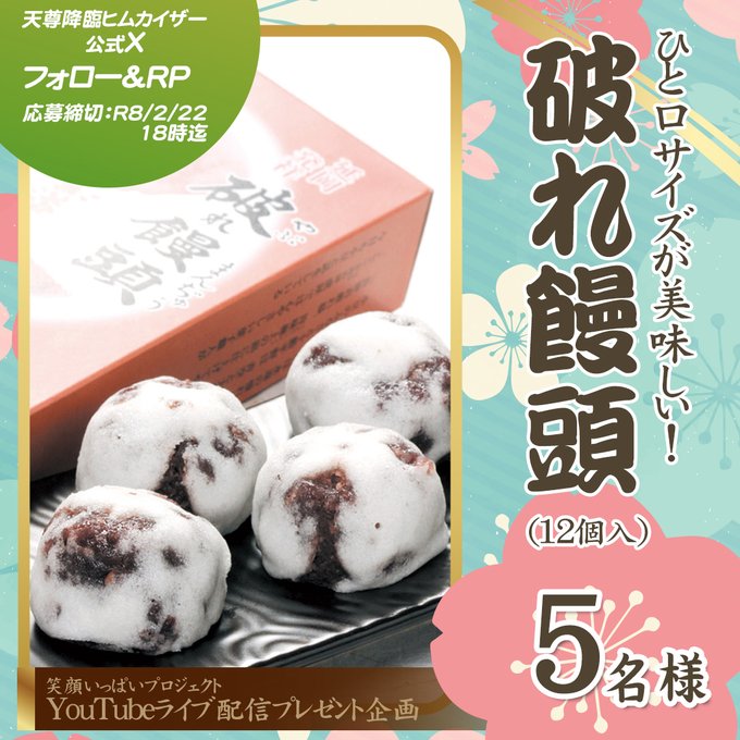 賞品:風の菓子虎彦 延岡名物 破れ饅頭(5名様)