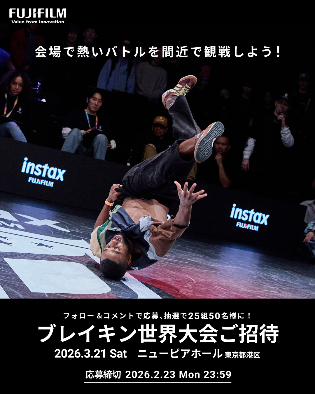 賞品:「FUJIFILM instax Undisputed」Tokyo World Finalにご招待(25組50名様)