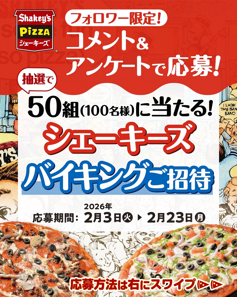 【Instagram懸賞】シェーキーズ バイキングご招待券 2枚セットを50組100名様にプレゼント