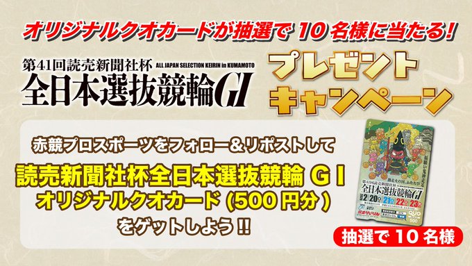 賞品:読売新聞社杯全日本選抜競輪GⅠオリジナル QUOカード(10名様)