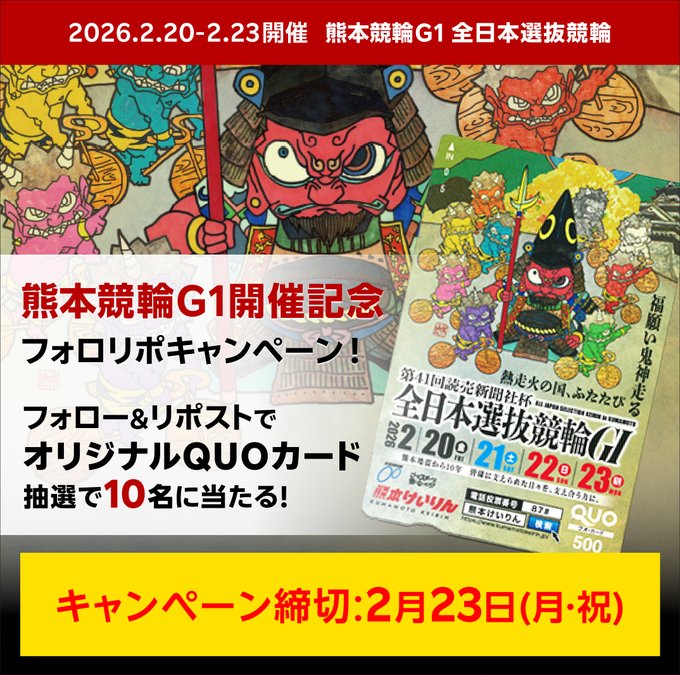 賞品:熊本競輪オリジナルQUOカード(10名様)