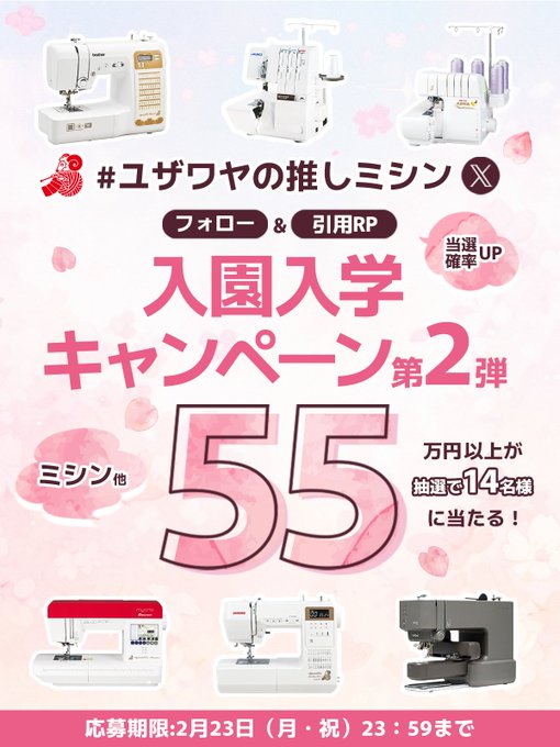 ハッシュタグ「ユザワヤの推しミシン」を付けて引用リポストで当選確率UP!