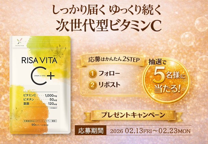 賞品:リポソーム型ビタミンC配合サプリ「RISA VITA C+」(5名様)