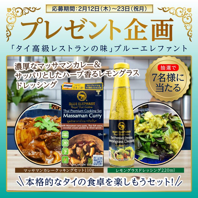 賞品:マッサマンカレークッキングセット110g&レモングラスドレッシング220ml(7名様)