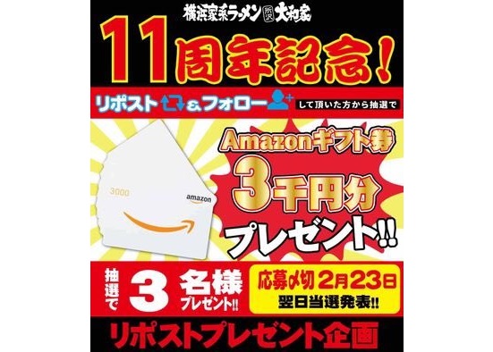 横浜家系ラーメン 所沢大和家‐フォロー&リポストキャンペーン