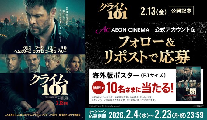 賞品:『クライム101』海外版ポスター(10名様)