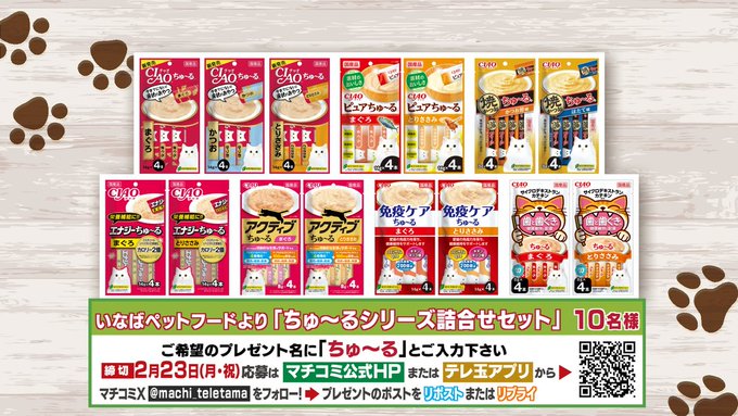 賞品:#いなばペットフード「#ちゅ~る シリーズ詰合せセット」(10名様)