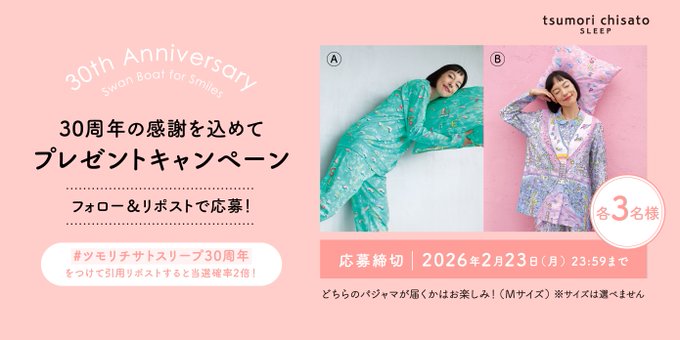 賞品:”ツモリチサト スリープ”アニバーサリーコレクションのパジャマ(6名様)