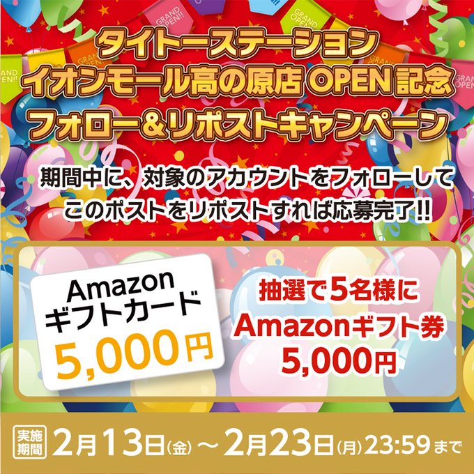 タイステ イオンモール高の原店‐フォロー&リポストキャンペーン