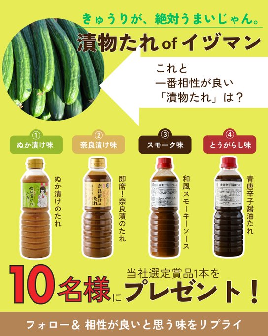 賞品:漬物たれ1本(10名様)