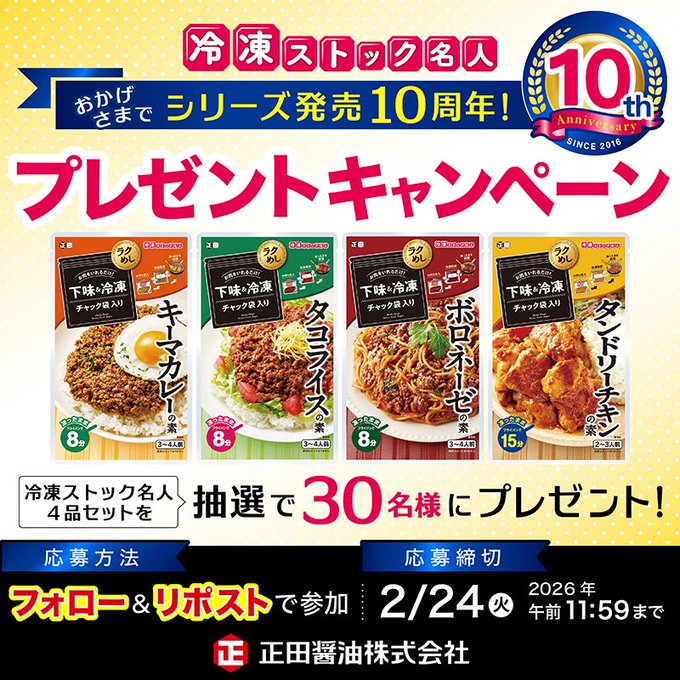 正田醤油株式会社‐冷凍ストック名人シリーズ発売10周年記念