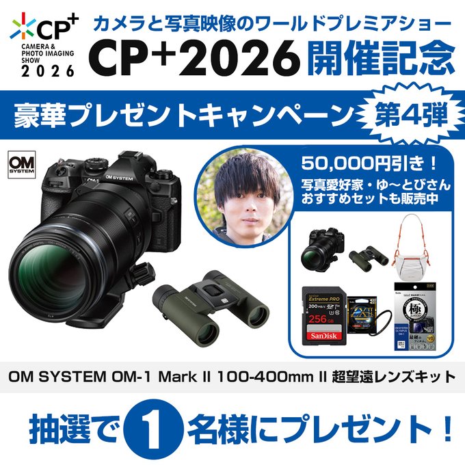 賞品:OM SYSTEM OM-1 Mark II 100-400mm II 超望遠レンズキット(1名様)