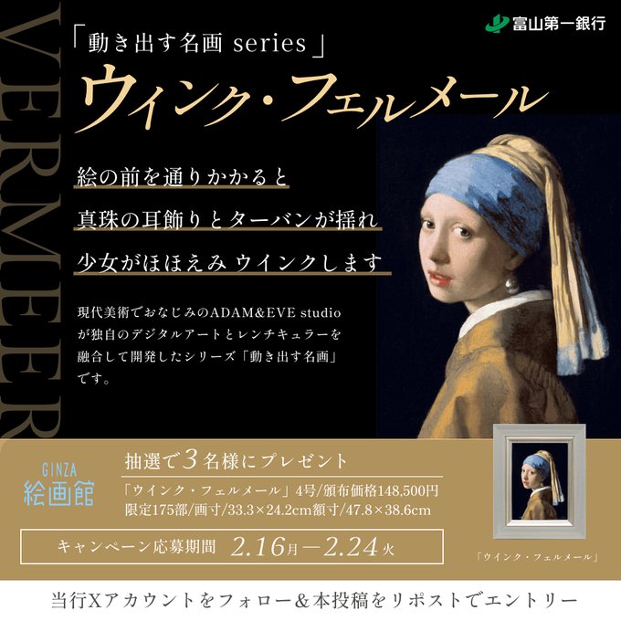 賞品:絵画「ウィンク・フェルメール」(3名様)