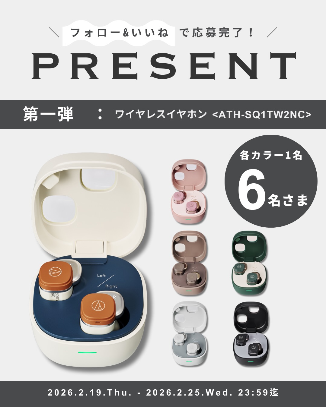 賞品:ワイヤレスイヤホン ATH-SQ1TW2NC(6名様)