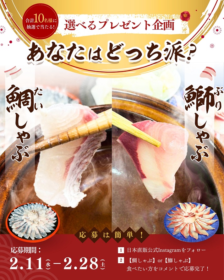 賞品:鯛しゃぶセット または 鰤しゃぶセット(10名様)
