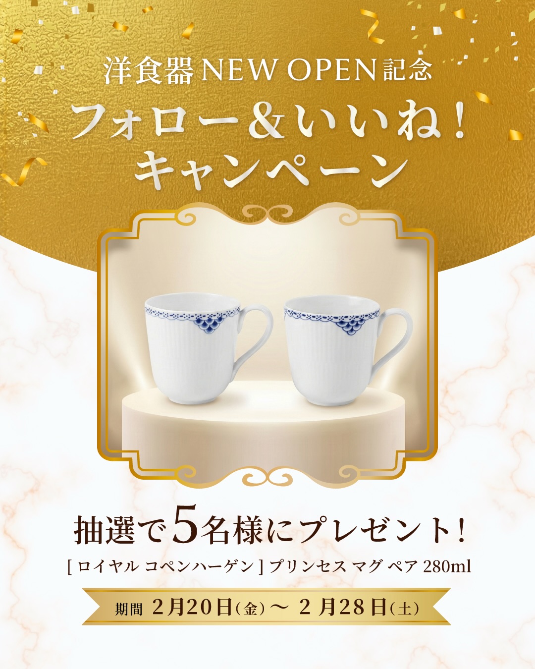 賞品:ロイヤルコペンハーゲン プリンセス マグ ペア 280ml(5名様)