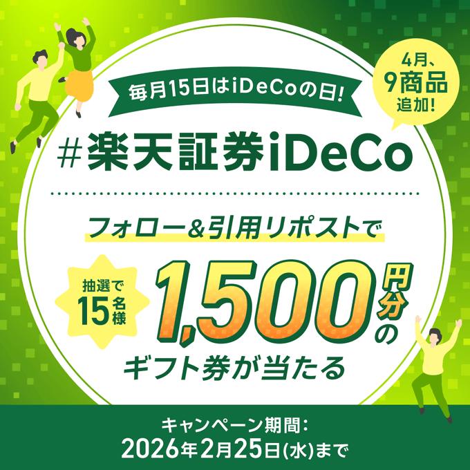 【X懸賞】giftee Box Select 1,500円分を15名様にプレゼント 2026.02.23楽天証券‐#毎月15日はiDeCoの日 賞品:1,500円分のギフト券(15名様) 締切:2026年2月25日(水)フォロー&引用リポストで【1,500円分のギフト券】が当たる!※詳細はキャンペーンページにてご確認ください。応募はこちらから