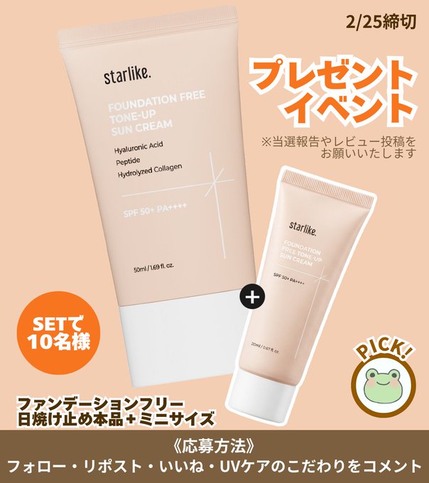 賞品:ファンデーションフリートーンアップ日焼け止め・本品&ミニサイズのSET(10名様)