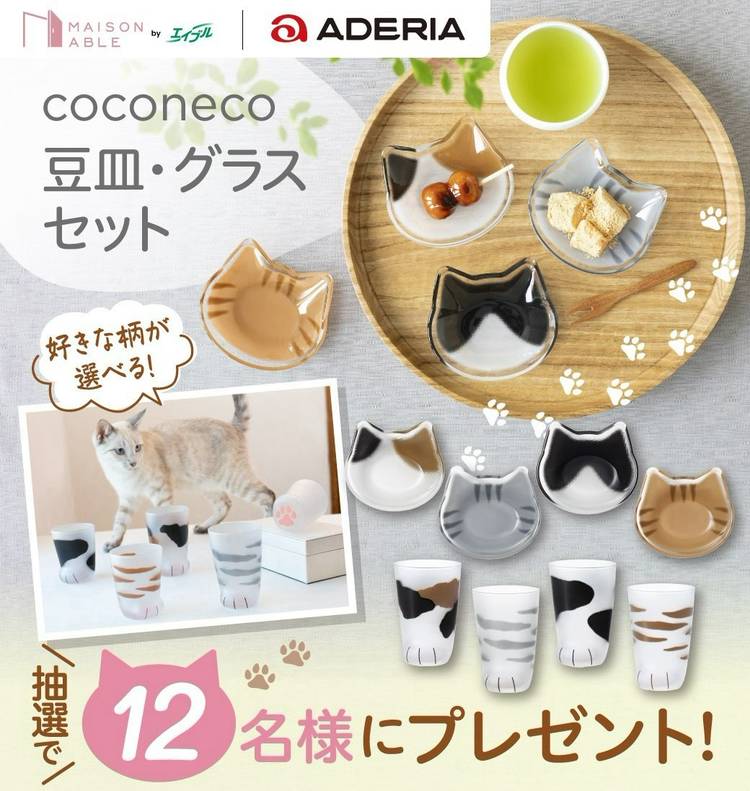 【LINE懸賞】coconeco 豆皿&coconeco グラス(親猫)を12名様にプレゼント 2026.02.23MAISON ABLE‐メゾンエイブル× アデリア プレゼントキャンペーン 賞品:coconeco 豆皿&coconeco グラス(親猫)(12名様) 締切:2026年3月5日(木)アンケートに答えてご応募ください。※詳細はキャンペーンページにてご確認ください。応募はこちらから