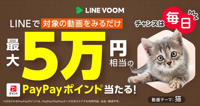 LINE VOOMで猫動画を見るとPayPayポイント最大5万円相当が当たる!