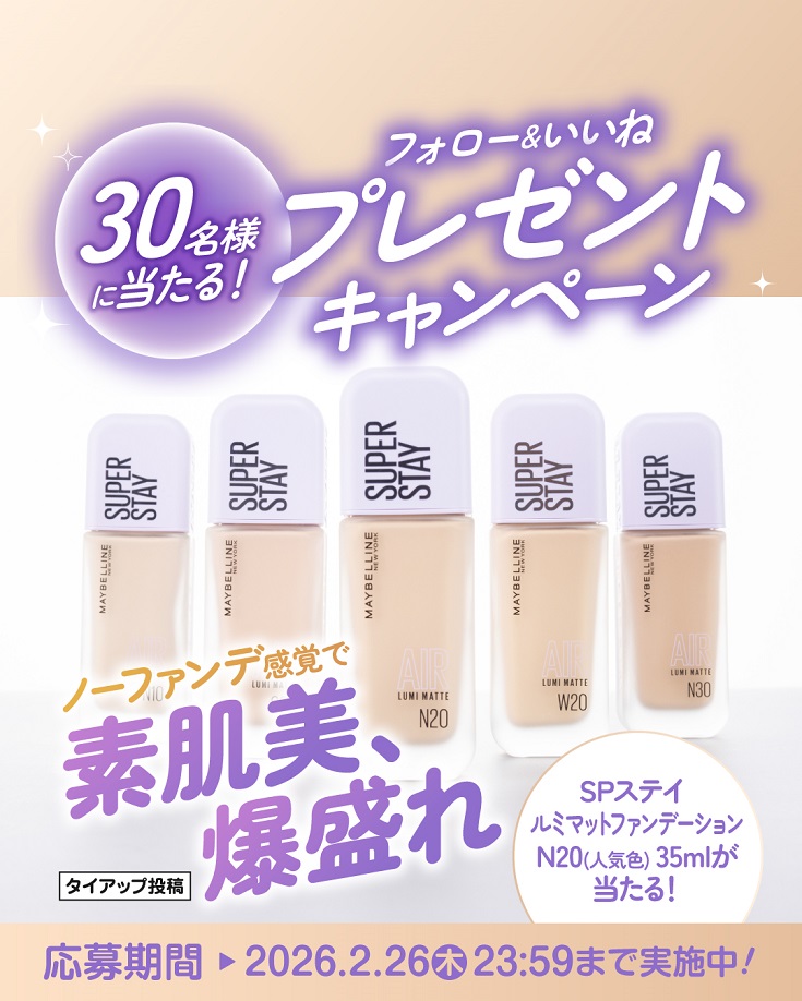 賞品:SPステイ ルミマットファンデーション N20(人気色) 35ml(30名様)