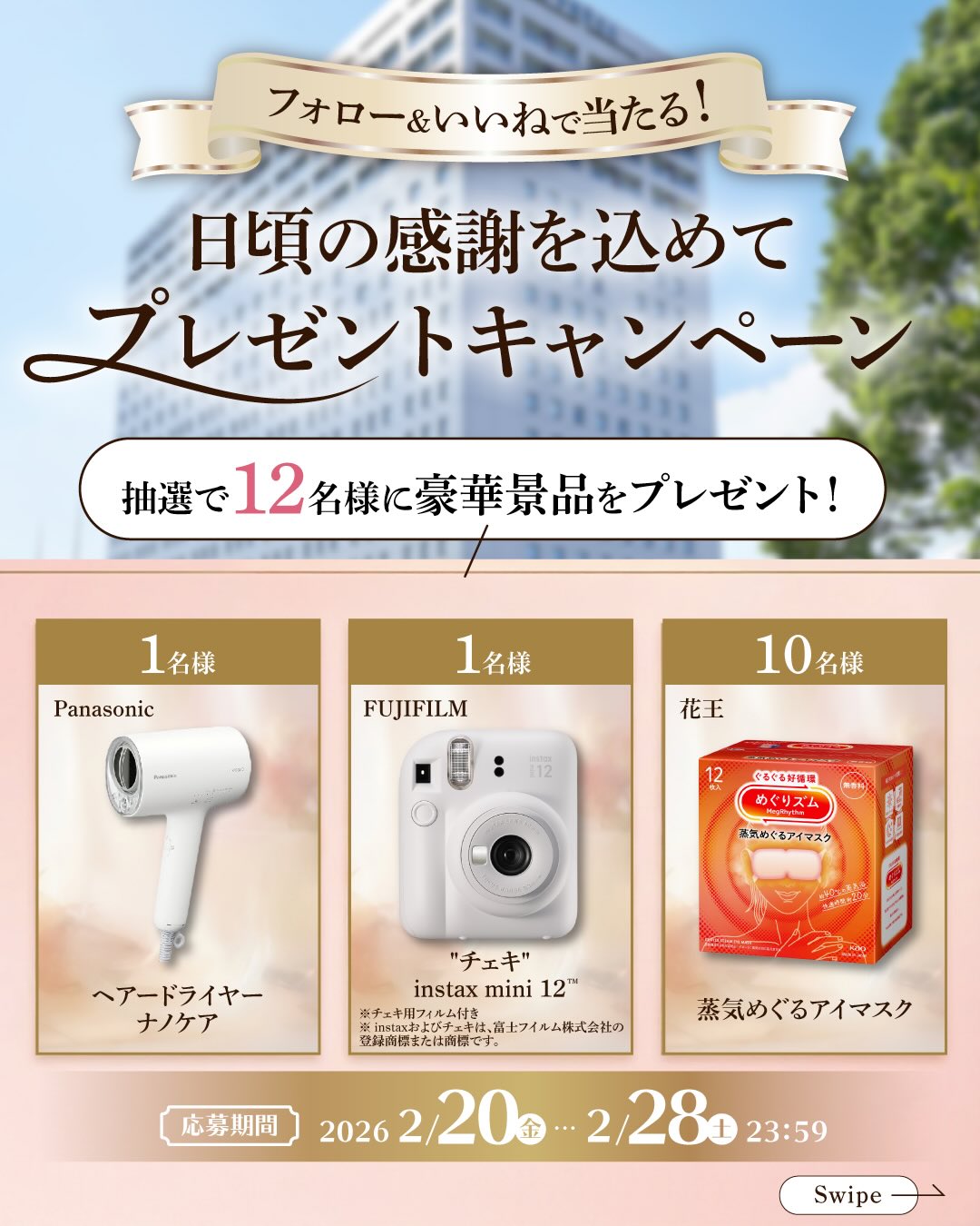 【Instagram懸賞】Panasonic ヘアードライヤー ナノケア、チェキ instax mini 12、蒸気めぐるアイマスクを合計12名様にプレゼント