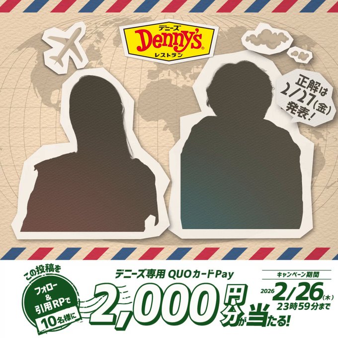 賞品:デニーズ専用QUOカードPay2,000円分(10名様)