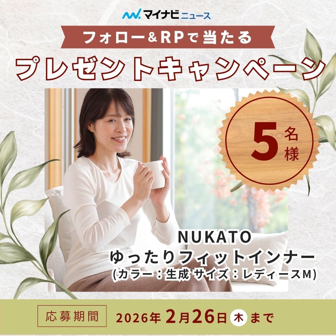 賞品:鈴木靴下 「NUKATO ゆったりフィットインナー」(カラー:生成、サイズ:レディースM)(5名様)
