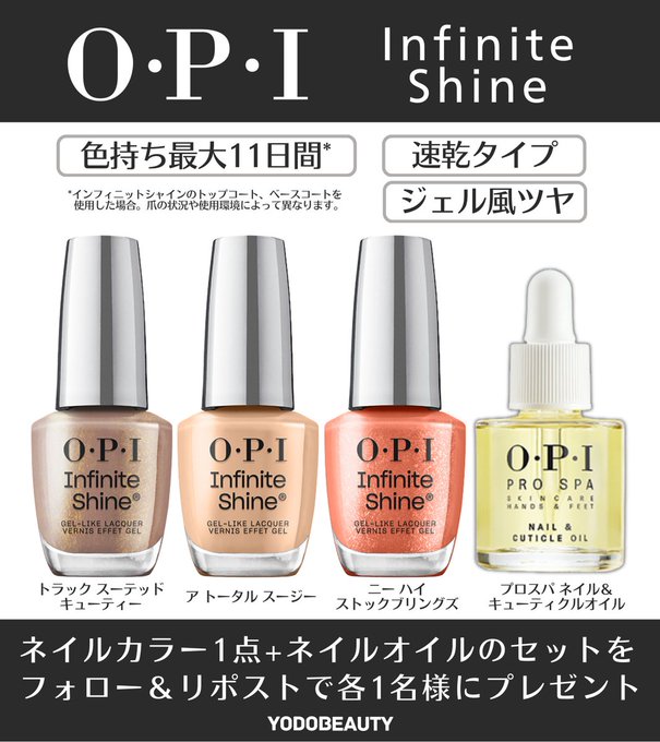 賞品:OPI「Infinite Shine」ネイルカラー1本+ネイルオイル(各1名様)