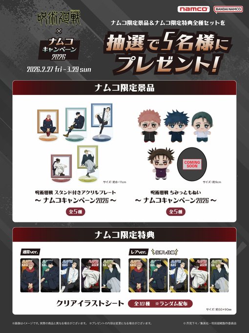 賞品:TVアニメ「呪術廻戦」全種セット(5名様)