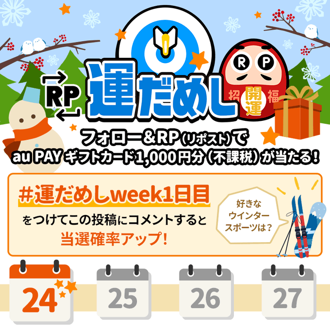 賞品:auPAY ギフトカード1,000円分(不課税)(100名様)