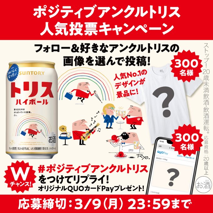 一番人気のアンクルトリスのイラスト入りTシャツが300名様に当たる🎁
