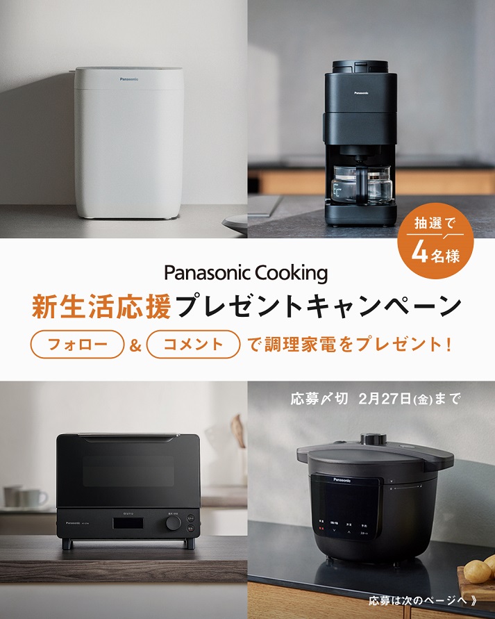 フォロー&コメントで、期間中にご応募いただいた方の中から合計4名様にパナソニックの調理家電をプレゼント