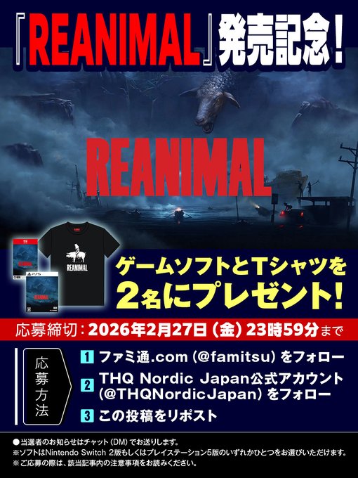 @famitsu @THQNordicJapan をフォロー&キャンペーン対象ポストをリポストしてご応募ください。