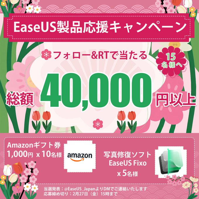 【X懸賞】Amazonギフト券1,000円分、EaseUSFixo月間ライセンスを合計15名様にプレゼント