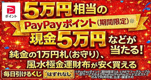PayPayポイント(期間限定)5万円相当&現金5万円などが当たるくじ