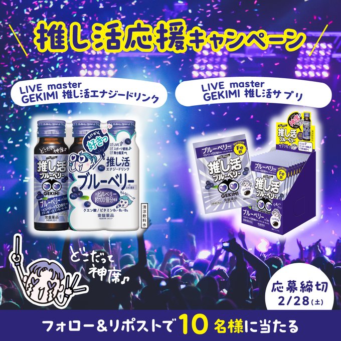 賞品:ドリンク3本+サプリ10袋(10名様)