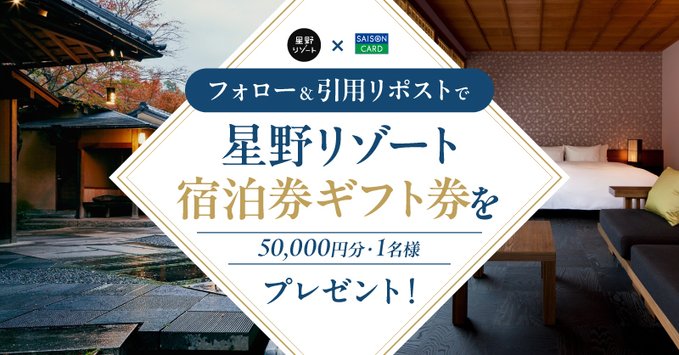 賞品:星野リゾート宿泊ギフト券50,000円分(1名様)