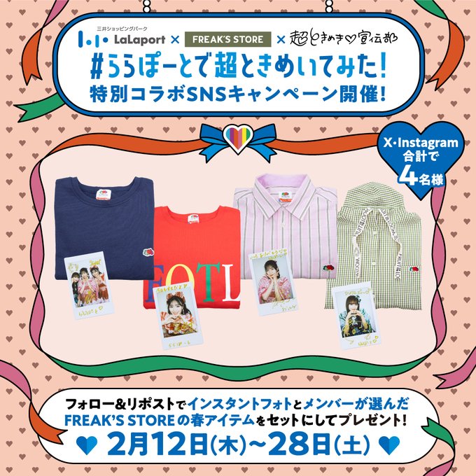 賞品:超ときめき♡宣伝部のサイン入りインスタントフォトとメンバーが選んだFREAK’S STOREの春の新作アイテムのセット(4名様)