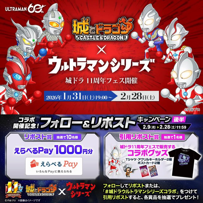 ●引用RP(#城ドラウルトラマンシリーズコラボ をつけて)で「城ドラ11周年フェスで販売するコラボグッズ」を1名様🎁