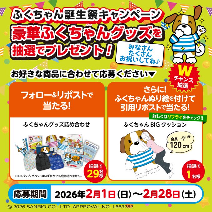 賞品:ふくちゃんグッズ(合計30名様)