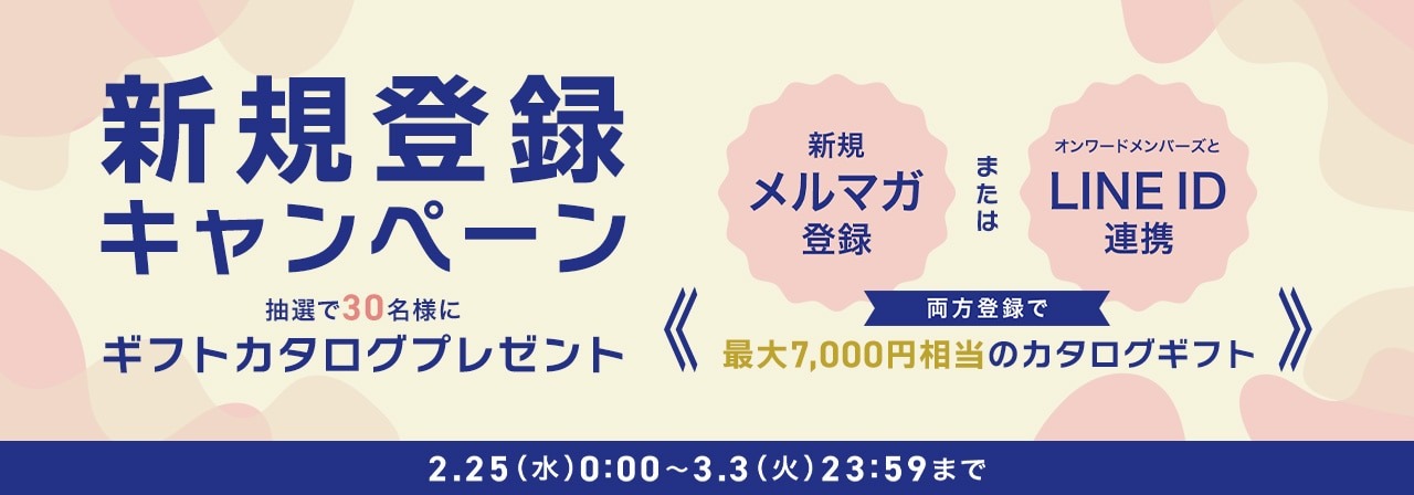 期間中、新たにメルマガ登録もしくはオンワードメンバーズとLINE連携してくださった方の中から、抽選で30名様にオンワード・マルシェのグルメギフトカタログをプレゼント!