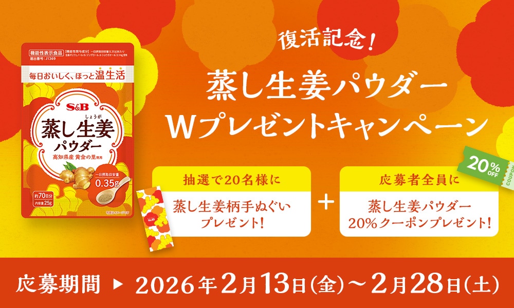 エスビー食品公式通販 お届けサイト‐復活記念!蒸し生姜パウダーWプレゼントキャンペーン